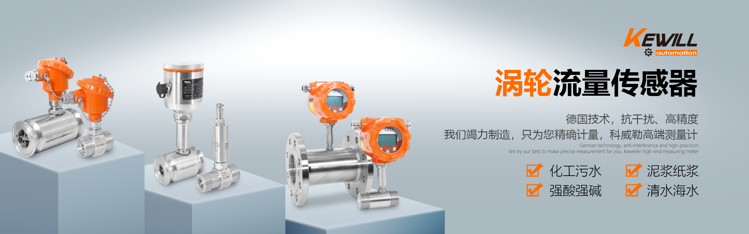 科威勒(中國)自動化有限公司是KewillAutomationGmbH(德國科威勒自動化公司)的全資子公司,主要銷售產品有:流量計,電磁流量計,進口流量計,進口電磁流量計,KEWILL(科威勒),溫度傳感器,流量傳感器,壓力傳感器,液位開關,壓力開關,物位開關,溫度開關,流量開關,液位計等,銷售熱線:021-54430662.  德國科威勒 (KEWILL)成立于1975年,位于德國 Flughafenstr. 1-4 2325 Hamburg,主要生產流量開關、流量監控器、流量計,是當前世界上較大的小口徑流量監控器和開關生產工廠。1993年通過了ISO9001國際認 證,1999年發明了熱傳溫差技術并成功運用到流量檢測領域并已成為行業標準。   科威勒(KEWILL)公司擁有嚴格的質檢管理體系和完善的售后服務體系,高品質和良好的聲譽奠定了其在行業內世界先進地位。
